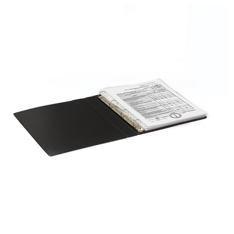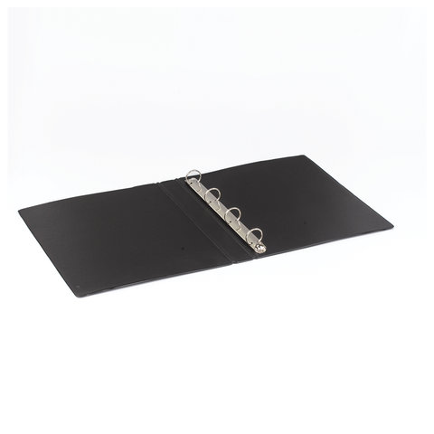Папка на 4 кольцах BRAUBERG, картон/ПВХ, 35 мм, черная, до 250 листов (удвоенный срок службы), 221483