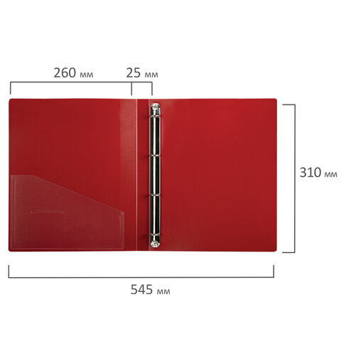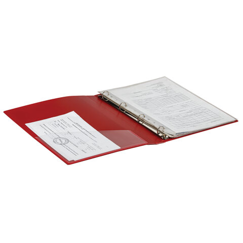 Папка на 4 кольцах, ширина 25 мм, BRAUBERG EXTRA, до 170 листов, КРАСНАЯ, 0,7 мм, 270545
