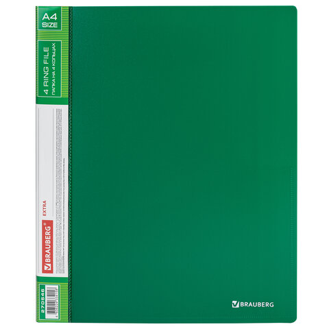 Папка на 4 кольцах, ширина 25 мм, BRAUBERG EXTRA, до 170 листов, ЗЕЛЕНАЯ, 0,7 мм, 270546