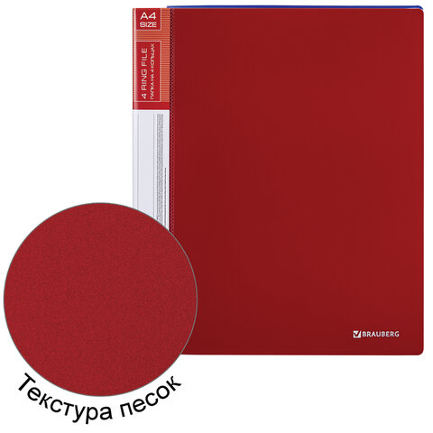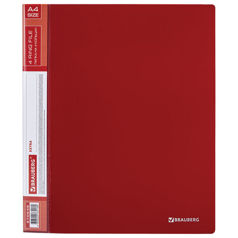 Папка на 4 кольцах, ширина 40 мм, BRAUBERG EXTRA, до 300 листов, КРАСНАЯ, 0,8 мм, 270549