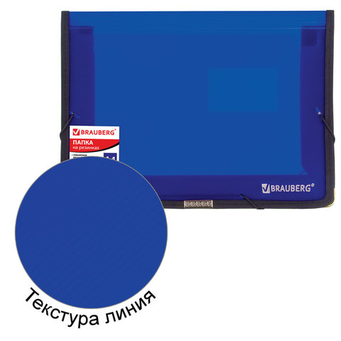 Папка на резинках BRAUBERG, широкая, А4, 330х240 мм, синяя, до 500 листов, 0,6 мм, 227978