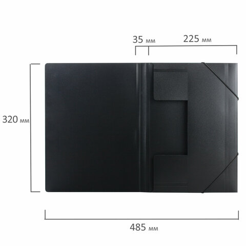 Папка на резинках BRAUBERG, стандарт, черная, до 300 листов, 0,5 мм, 221624