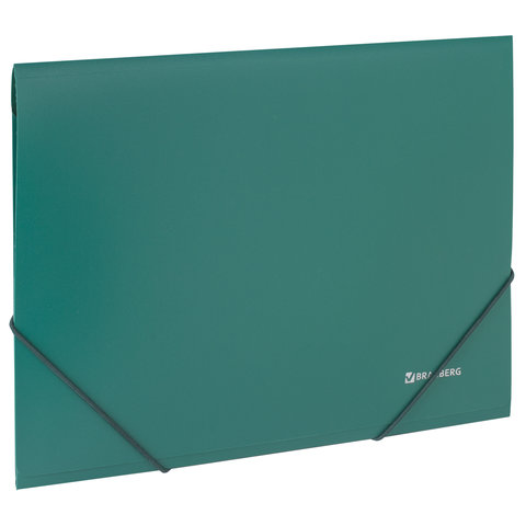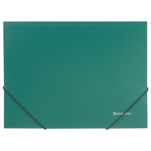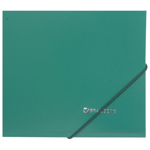 Папка на резинках BRAUBERG, стандарт, зеленая, до 300 листов, 0,5 мм, 221621