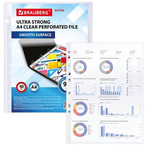 Перфорированные папки-файлы BRAUBERG "EXTRA 900" предназначены для хранения документов в папке с любым кольцевым механизмом или скоросшивателем.