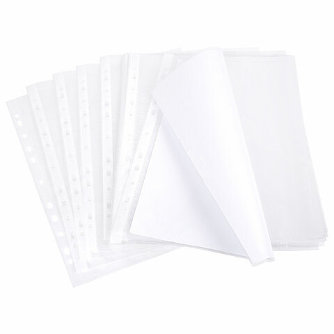 Папки-файлы перфорированные А4 BRAUBERG "STANDARD+", КОМПЛЕКТ 200 шт., матовые, 45 мкм, 229662