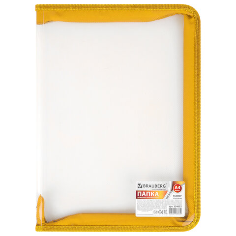 Папка на молнии пластиковая BRAUBERG "Диагональ", А4, 325х230 мм, прозрачная, молния ассорти, 224052