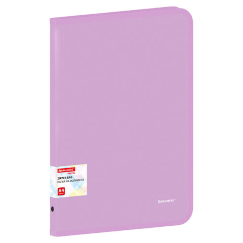 Папка объемная на молнии пластиковая BRAUBERG PASTEL, А4, 330х240 мм, 600 мкм, цвет лиловый, 271971