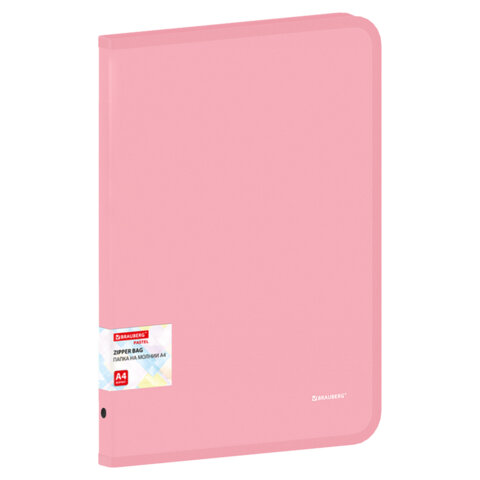 Папка объемная на молнии пластиковая BRAUBERG PASTEL, А4, 330х240 мм, 600 мкм, цвет персиковый, 271972