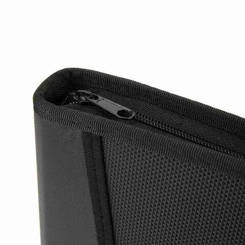 Папка на молнии пластиковая BRAUBERG, А4, 350х282х33 мм, 2 отделения, 4 кармана, бизнес-класс, черная, 225166