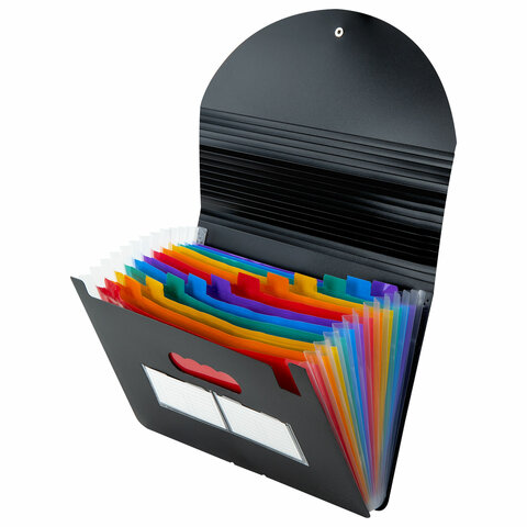 Папка-органайзер для бумаг и документов на резинке, 13 отделений, BRAUBERG DOCS, А4, черная, 271152