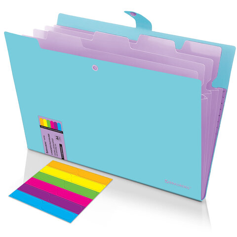 Папка-органайзер на кнопке 5 отделений, BRAUBERG "Extra", А4, голубая с лиловым, 274099