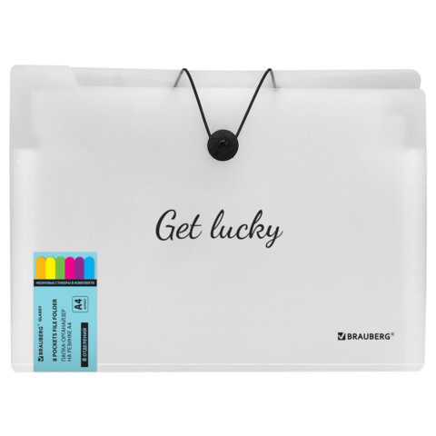 Папка-органайзер на резинке 8 отделений, BRAUBERG "Glassy", А4, прозрачная, 271928