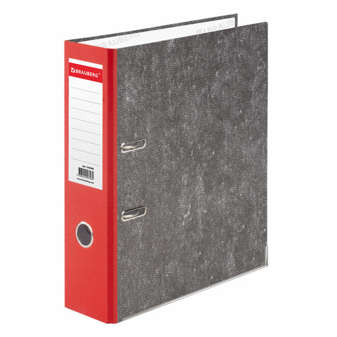Папка-регистратор BRAUBERG, фактура стандарт, с мраморным покрытием, 75 мм, красный корешок, 220988