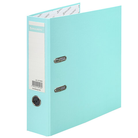 Папка-регистратор BRAUBERG PASTEL ламинированная, 75 мм, цвет мятный, 271839