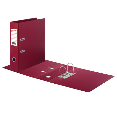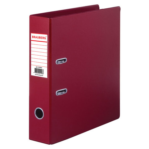 Папка-регистратор BRAUBERG с двухсторонним покрытием из ПВХ, 70 мм, бордовая, 222653