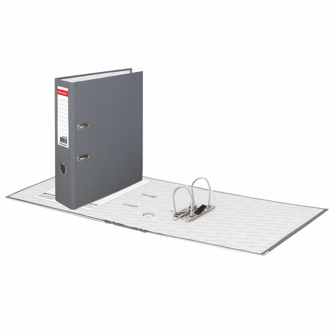 Папка-регистратор BRAUBERG с покрытием из ПВХ, 80 мм, с уголком, серая (удвоенный срок службы), 227190
