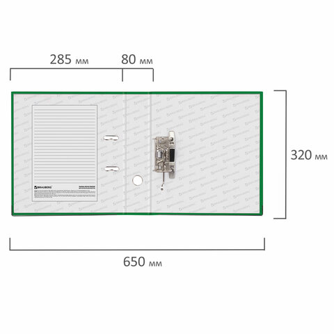Папка-регистратор BRAUBERG с покрытием из ПВХ, 80 мм, с уголком, зеленая (удвоенный срок службы), 227193