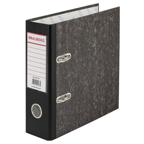 Папка-регистратор МАЛЫЙ ФОРМАТ (148х210 мм), А5, 70 мм, ВЕРТИКАЛЬНАЯ, покрытие мраморное, ПВХ,черная, BRAUBERG, 221721