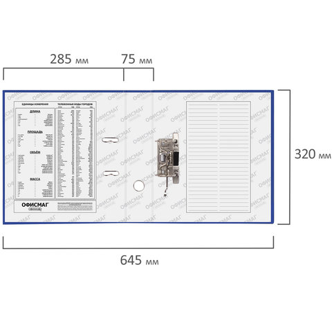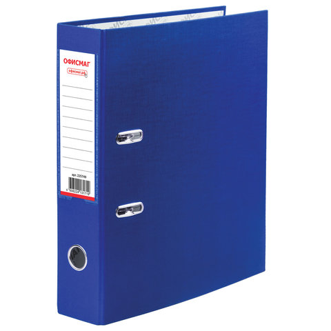 Папка-регистратор ОФИСМАГ с арочным механизмом, покрытие из ПВХ, 75 мм, синяя, 225749
