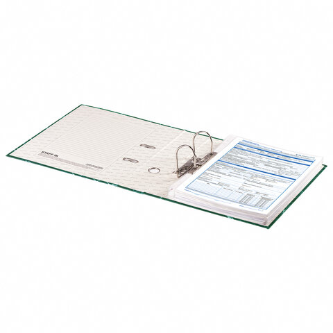 Папка-регистратор STAFF "Basic" БЮДЖЕТ с мраморным покрытием, 70 мм, без уголка, зеленая, 229620