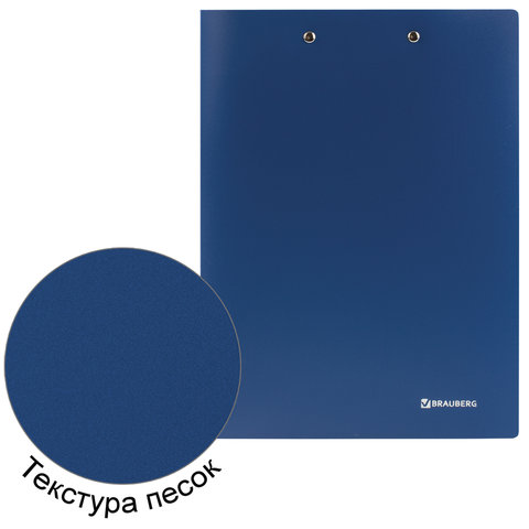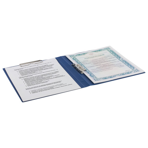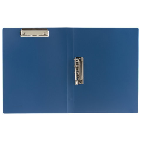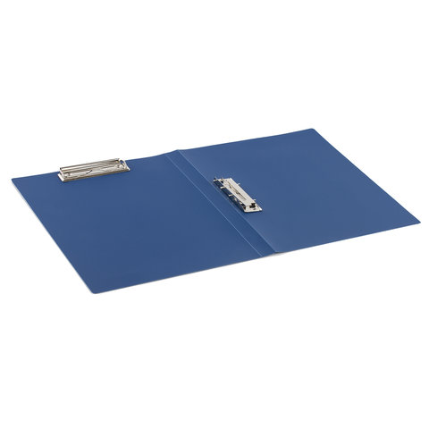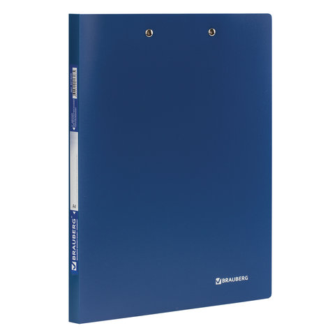 Папка с 2-мя металлическими прижимами BRAUBERG стандарт, синяя, до 100 листов, 0,6 мм, 221625