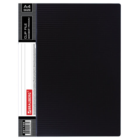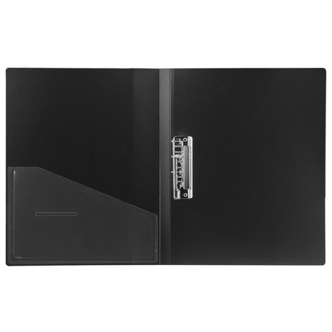 Папка с боковым металлическим прижимом и внутренним карманом BRAUBERG "Contract", черная, до 100 л., 0,7 мм, бизнес-класс, 221786