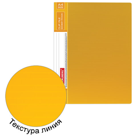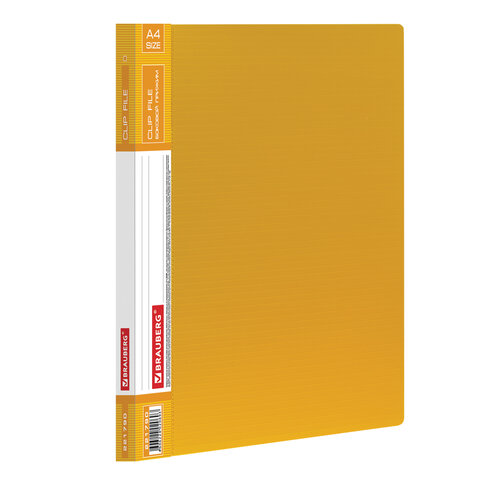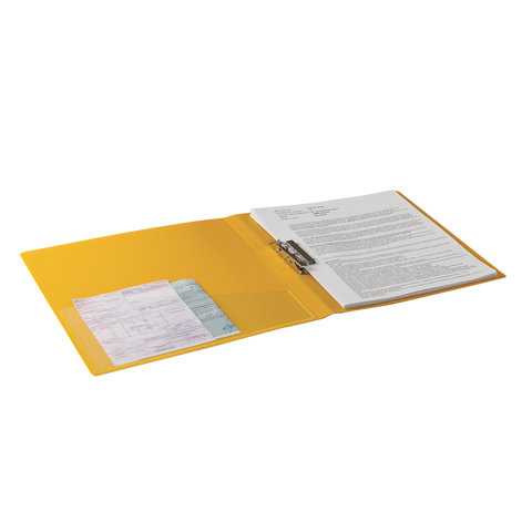 Папка с боковым металлическим прижимом и внутренним карманом BRAUBERG "Contract", желтая, до 100 л., 0,7 мм, бизнес-класс, 221790