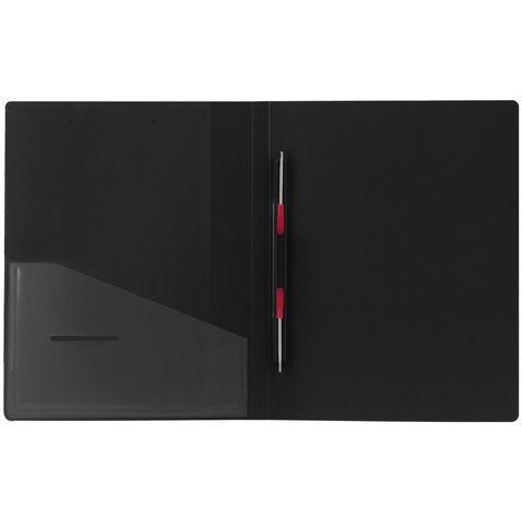 Папка с металлическим скоросшивателем и внутренним карманом BRAUBERG "Contract", черная, до 100 л., 0,7 мм, бизнес-класс, 221781