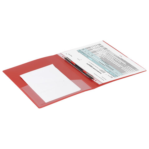 Папка с металлическим скоросшивателем и внутренним карманом BRAUBERG "Contract", красная, до 100 л., 0,7 мм, бизнес-класс, 221783