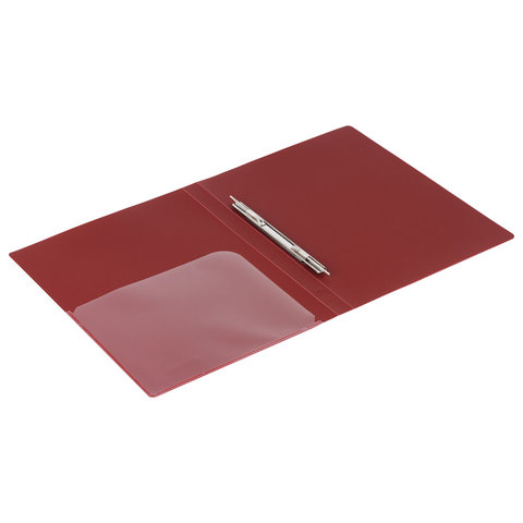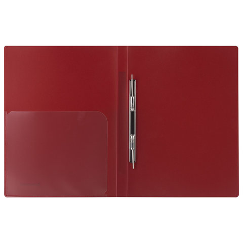 Папка с металлическим скоросшивателем и внутренним карманом BRAUBERG "Диагональ", темно-красная, до 100 листов, 0,6 мм, 221355