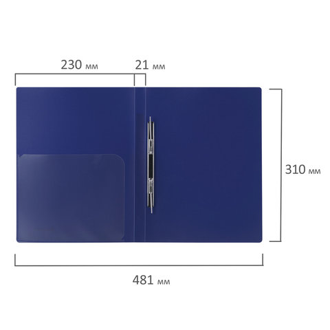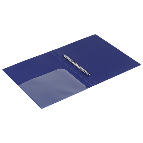Папка с металлическим скоросшивателем и внутренним карманом BRAUBERG "Диагональ", темно-синяя, до 100 листов, 0,6 мм, 221352