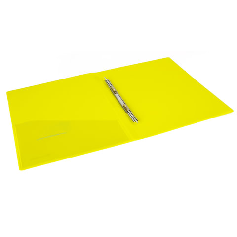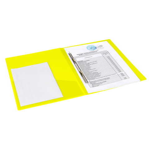 Папка с металлическим скоросшивателем и внутренним карманом BRAUBERG "Neon", 16 мм, желтая, до 100 листов, 0,7 мм, 227465