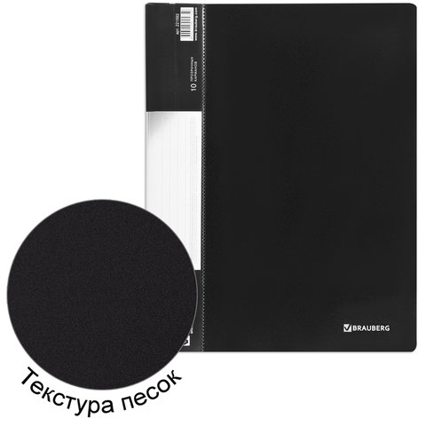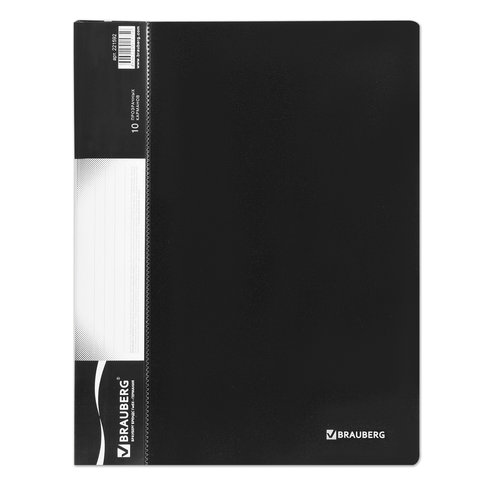 Папка 10 вкладышей BRAUBERG стандарт, черная, 0,6 мм, 221592