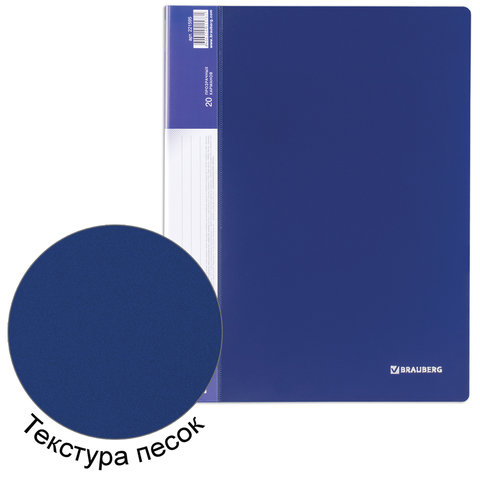 Папка 20 вкладышей BRAUBERG стандарт, синяя, 0,6 мм, 221595