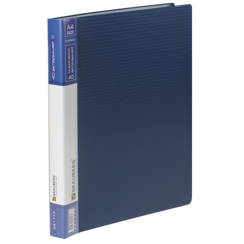 Папка 40 вкладышей BRAUBERG "Contract", синяя, вкладыши-антиблик, 0,7 мм, бизнес-класс, 221777