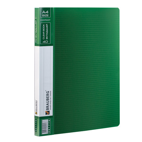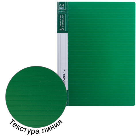 Папка 40 вкладышей BRAUBERG "Contract", зеленая, вкладыши-антиблик, 0,7 мм, бизнес-класс, 221779