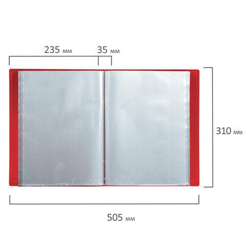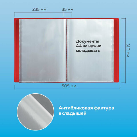 Папка 60 вкладышей BRAUBERG стандарт, красная, 0,8 мм, 228683
