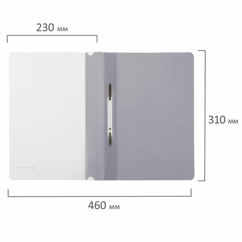 Скоросшиватель пластиковый BRAUBERG, А4, 130/180 мкм, серый, 220387
