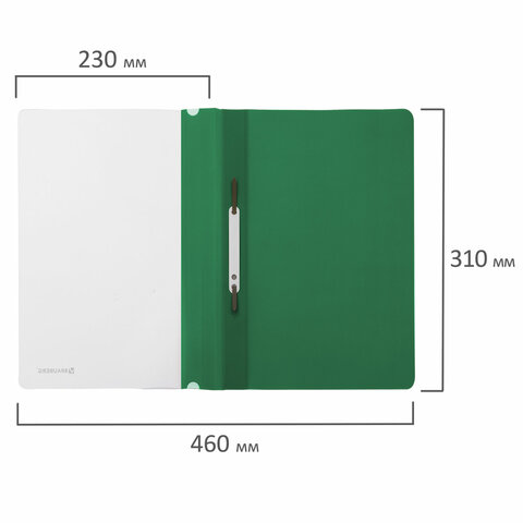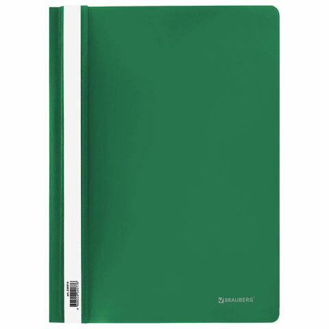 Скоросшиватель пластиковый BRAUBERG, А4, 130/180 мкм, зеленый, 220414
