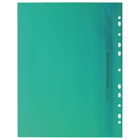 Скоросшиватель пластиковый с перфорацией BRAUBERG, А4, 140/180 мкм, зеленый, 226581
