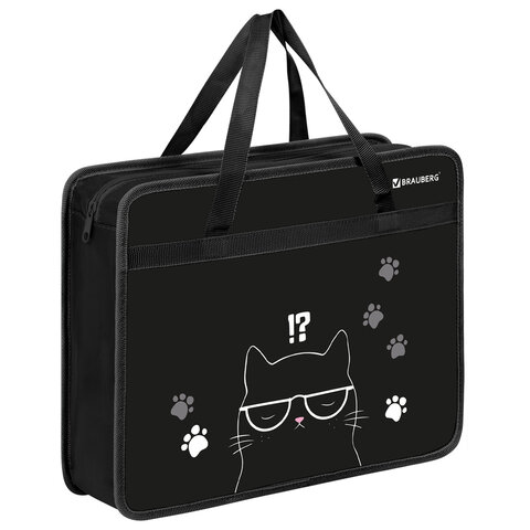 Папка на молнии с ручками BRAUBERG А4, 1 отделение, пластик, 80 мм, "Tough cat", 274493