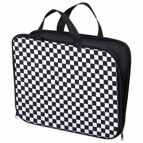 Папка на молнии с ручками BRAUBERG А4, 1 отделение, полиэстер, 20 мм, "Black and White", 272172