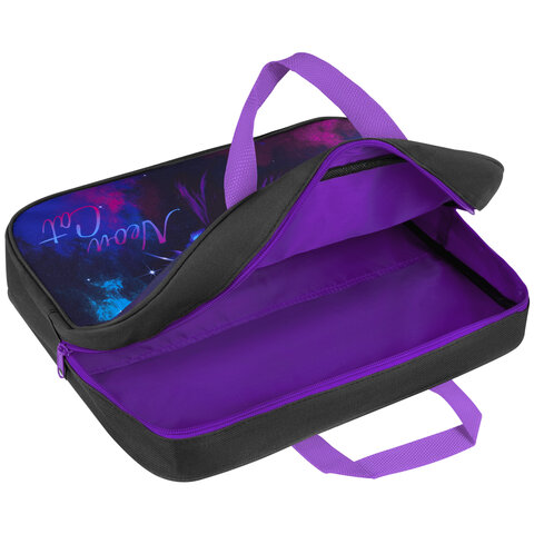 Папка на молнии с ручками BRAUBERG А4, 1 отделение, полиэстер, 80 мм, "Neon cat", 271482
