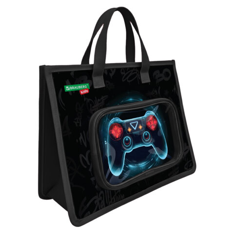 Папка для тетрадей BRAUBERG KIDS формата А4 "Bright gamepad" с ручками и внешним прозрачным карманом на молнии.