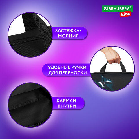 Папка на молнии с ручками BRAUBERG KIDS А4, 1 отделение, полиэстер, 80 мм, "Dark car", 273315