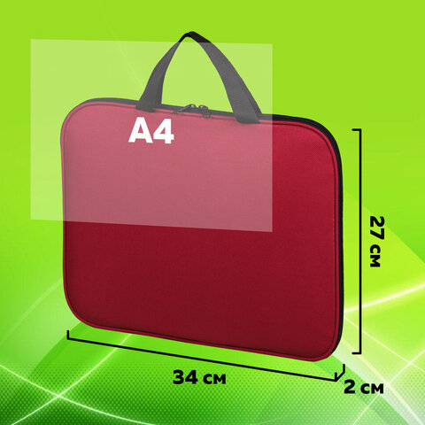 Папка на молнии с ручками STAFF EVERYDAY, А4, полиэстер, бордовая, 270738