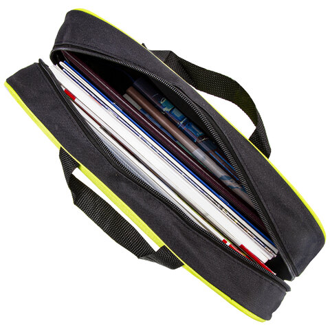 Папка-сумка для бумаг STAFF EVERYDAY формата А4 с ручками. Изготовлена из прочного полиэстера. Одно отделение, дополнительный карман внутри папки. Застегивается на молнию. Папка держит форму за счет прорезиненного канта по краям.