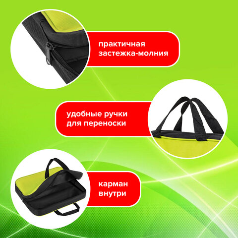 Папка на молнии с ручками STAFF EVERYDAY А4, 1 отделение, полиэстер, 80 мм, зеленая, 270742