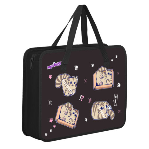 Папка на молнии с ручками ЮНЛАНДИЯ А4, 1 отделение, пластик, 80 мм, "Box cats", 274486