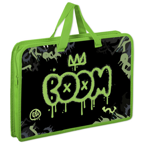 Папка на молнии с ручками ЮНЛАНДИЯ А4, 1 отделение, пластик, ширина 45 мм, "Boom", 272151